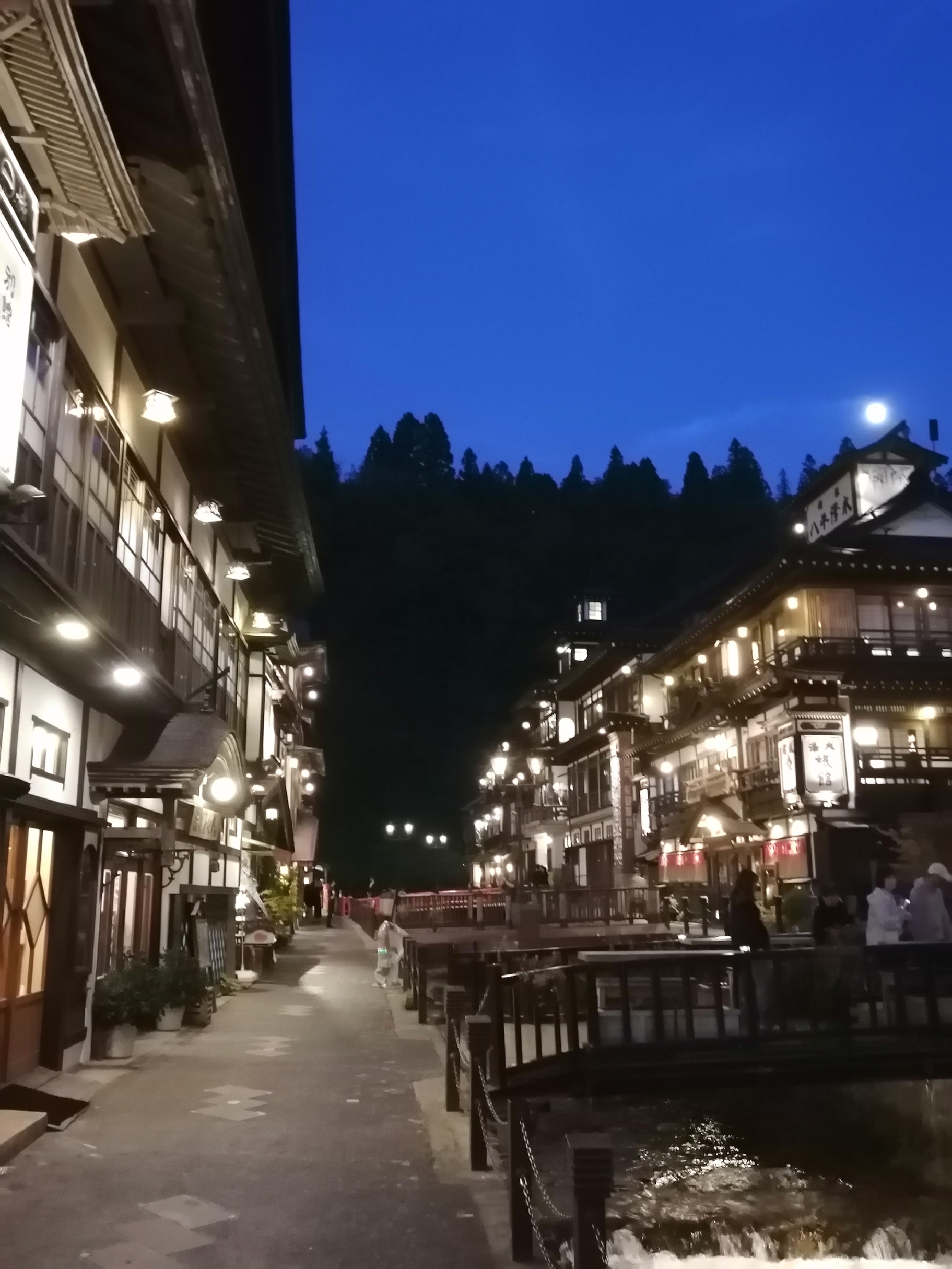 それからなんか先般も行ったばかりという気がするがまたしても銀山温泉へ行ってみる。詰まるところ、うちからちょっとドライブして行けるところでそこそこ風光明媚なところというと、銀山になってしまうのだった。日が落ちてから行くのは久しぶりだったが、行ってみてあれっと思ったのは前回、前々回よりも観光客が全然少なかったこと。2・3年前は外国人観光客でごった返していたのに。平日の夕飯どきだったからだろうか。それにしても人が少なかった。